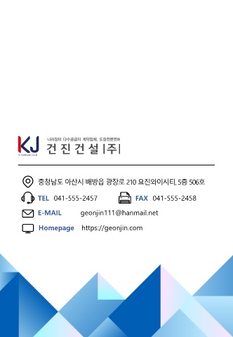 충 청 남 도 아 산 시 배 방 읍 광 장 로 210 요 진 와 이 시 티 , 5층 506호 TEL 041-555-2457 FAX 041-555-2458 E-MAIL geonjin111@hanmail.net Homepage https://geonjin.com