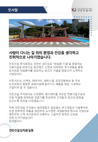 저희 건진건설 주식회사 임직원들은 끊임없는 연구개발과 기술투자로